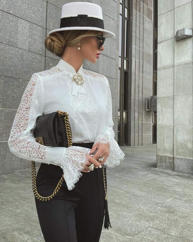 Такие блузки рекомендуется надевать с однотонными юбками, брюками или под кардиган без узоров в монохромном исполнении. В таких моделях блузок вы будете уместно смотреться в офисе, на вечеринке или в повседневной жизни.