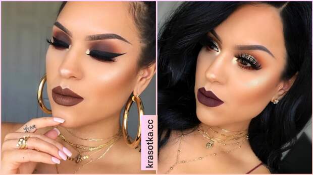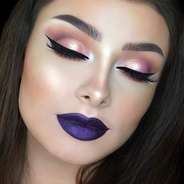 Темная помада – это оригинальный и красивый макияж. К такому красочному и выразительному акценту важно подобрать подходящий общий мейкап. Не стоит слишком сильно креативить, лучше воспользоваться нашими советами или рассмотреть варианты макияжа у знаменитых визажистов.