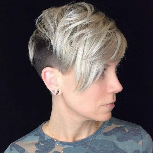 Пикси имеет множество вариаций. В зависимости от пожелания женщины можно сделать супер короткую стрижку или оставить немного удлиненные пряди. Также женщины более молодого возраста делают несколько выбритых элементов, чем еще больше повышают эффект самой кокетливой и невероятно привлекательной дамы.